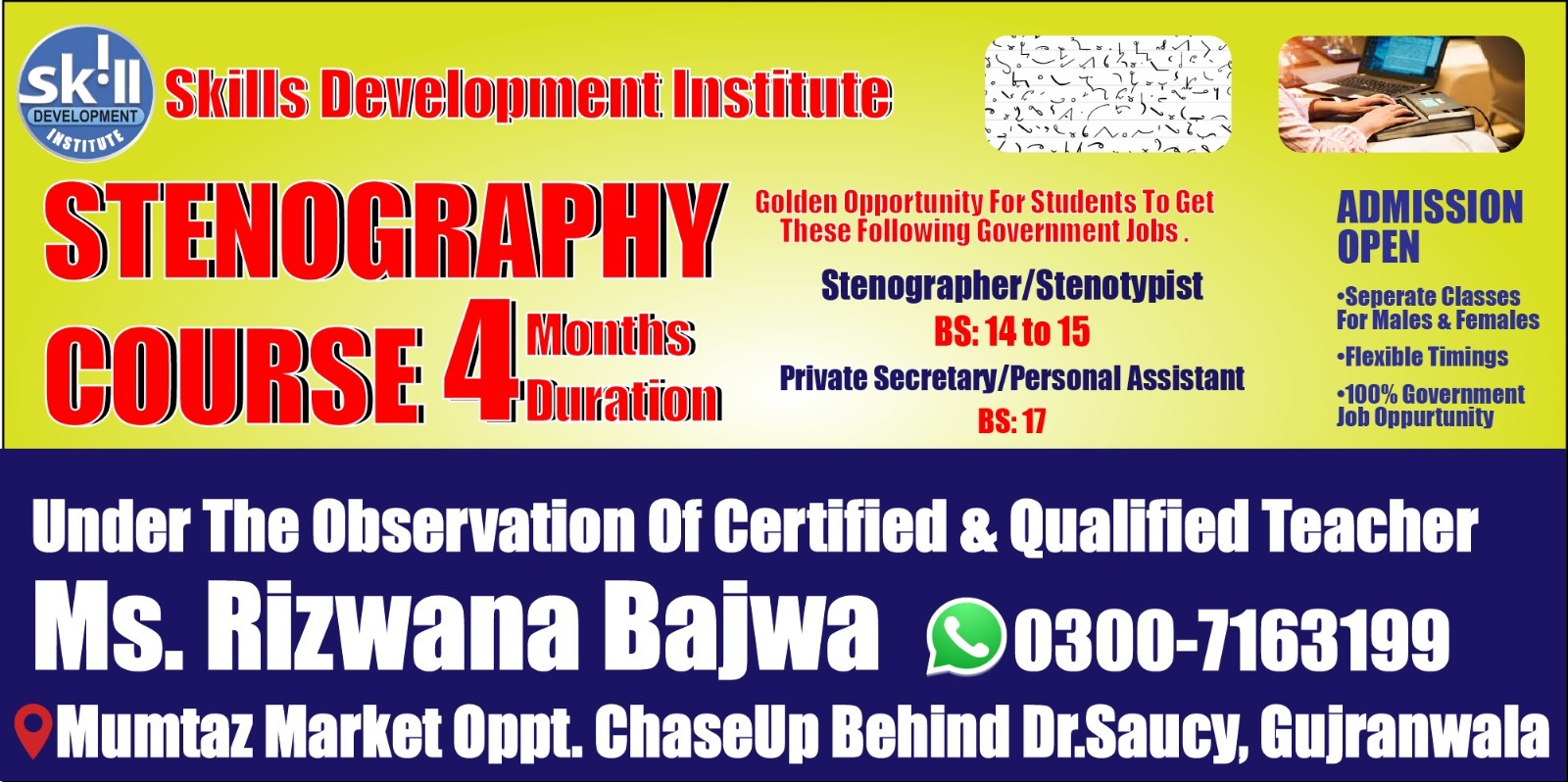 Shorthand/Stenographer Course in Pakistan – Skills Development Institute | Enroll Now for Just PKR 35,000Content: